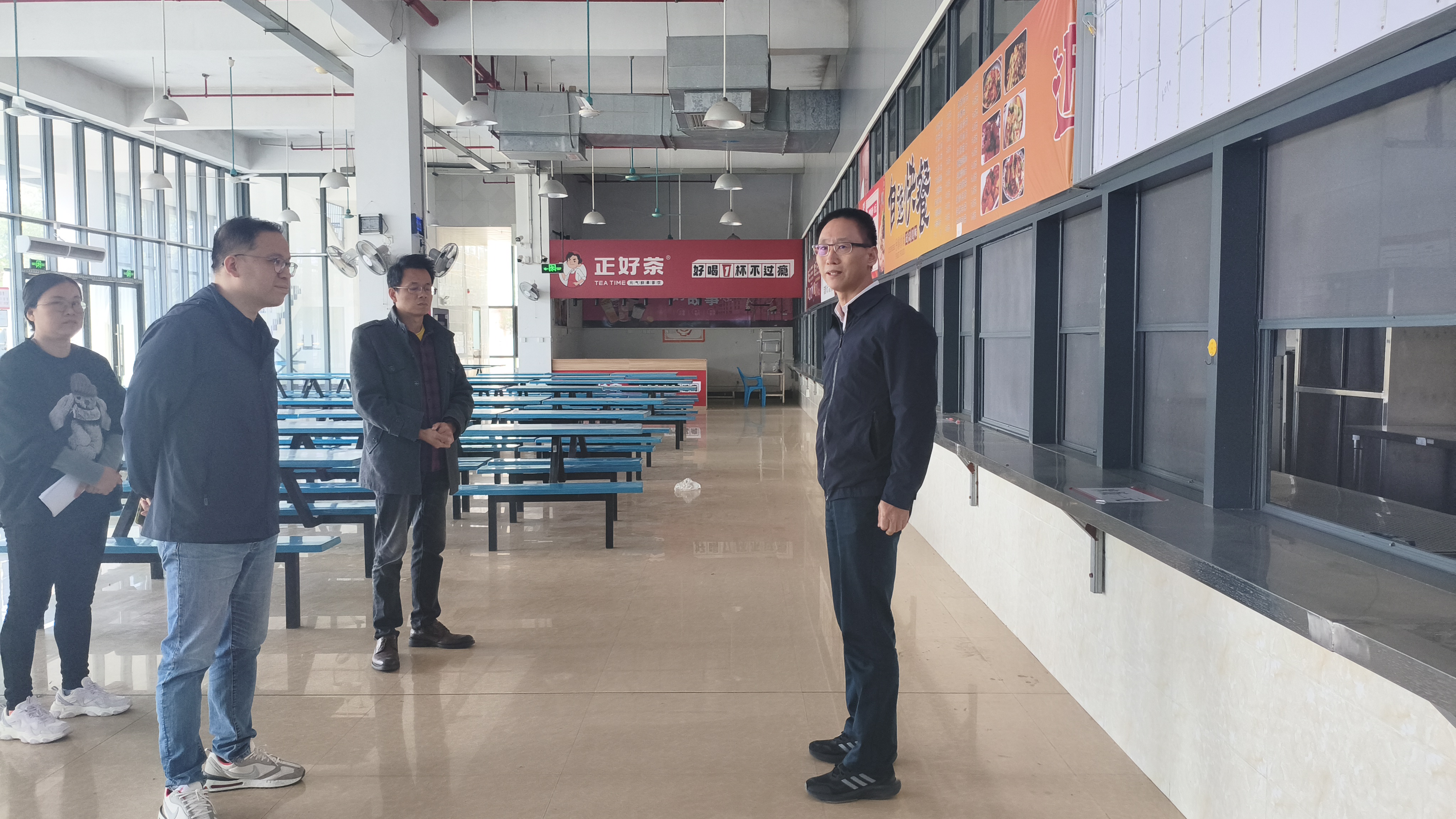 图:胡卫东检查武鸣校区食堂环境(黄普/摄)