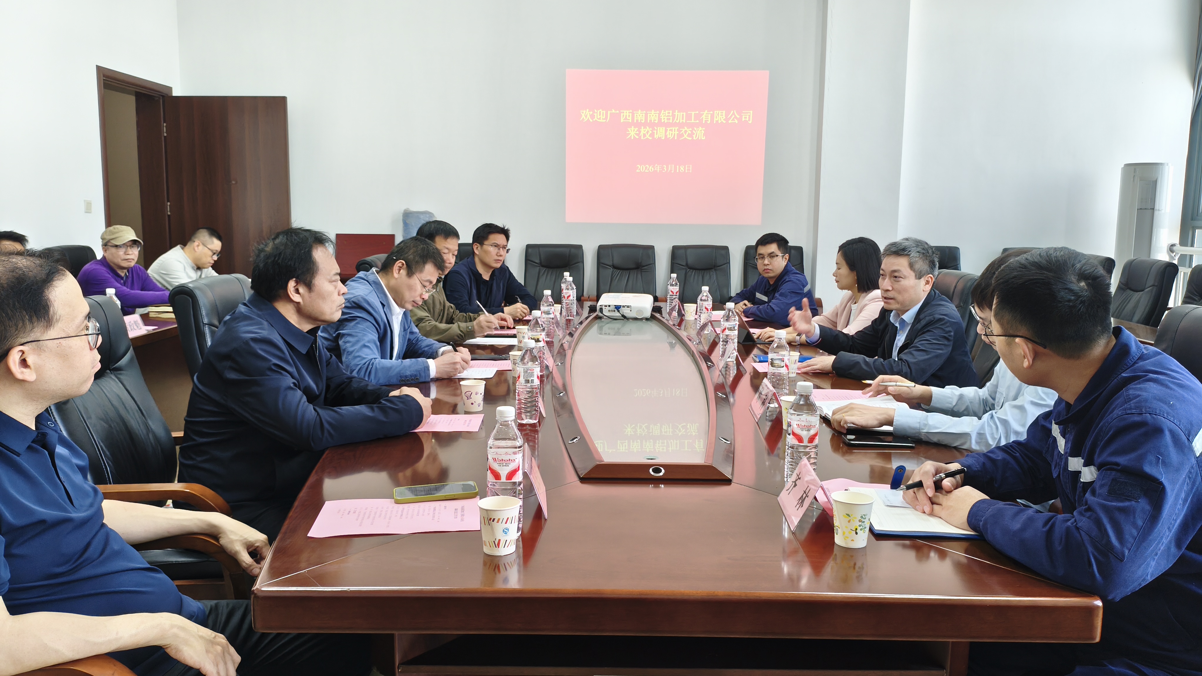 3月18日上午,广西南南铝加工有限公司党委书记、董事长马勤率队到我校进行考察交流。学校党委副书记、校长宾月景参加座谈交流。